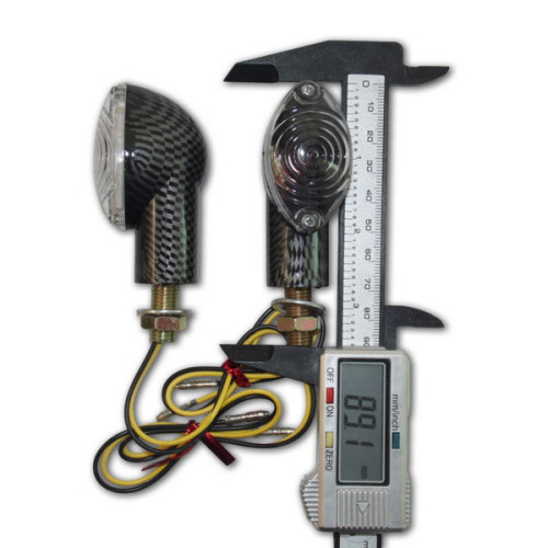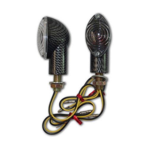 Універсальні овальні покажчики поворотів зі стилізацією під карбонове волокно. Надійні лампові сигнали для безпечного руху. Ідеально підходять для тюнінгу мотоциклів, мопедів та мінімокіків, включаючи радянську техніку.
