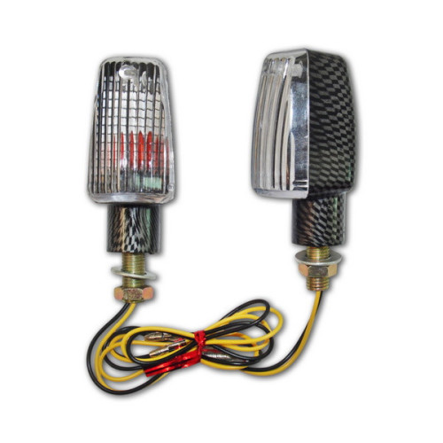 Покажчики повороту "будиночок" (Карбон). Універсальні лампові сигнали для візуального тюнінгу мотоциклів, мопедів та мінімокіків. Сучасний дизайн з імітацією карбонового волокна. Підходять для радянської та імпортної мототехніки, із прозорим склом.