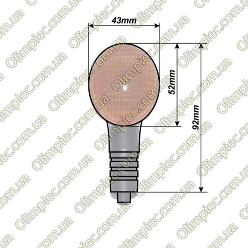 Універсальні овальні покажчики поворотів. Мають міцний чорний корпус та яскравий помаранчевий розсіювач. Комплектуються стандартними лампами розжарювання. Використовуються як основні або додаткові світлові прилади для безпечного позначення маневру. Підходять для різних типів мототехніки.