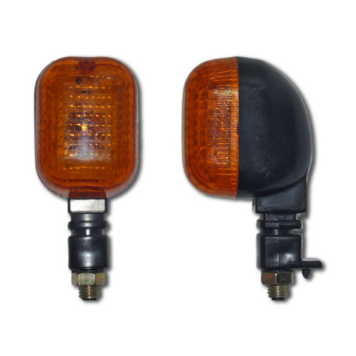 Прямокутні покажчики поворотів для мотоцикла чи скутера. Чорний корпус, класичний дизайн. Використовуються лампи розжарювання. Надійний комплект поворотів для заміни або додаткового обладнання. Ідеально підійде як бічний поворотник чи задній поворотник. Легке встановлення та підключення.
